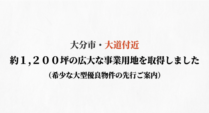 【新規取得用地のお知らせ】大分市大道付近にて約1,200坪の広大な事業用地を取得しました!