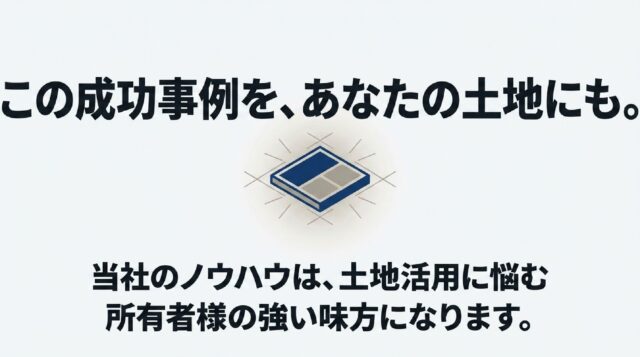 また、今回の自社プロジェクトは、遊休地を持て余している不動産オーナー様にとっても「土地活用の素晴らしい成功モデル」になります。