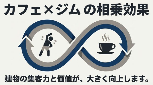 | カフェ×ジムの複合化 | 施設内での相互利用が生まれやすく、建物全体の集客力と地域でのブランド価値が飛躍的に高まります。 |