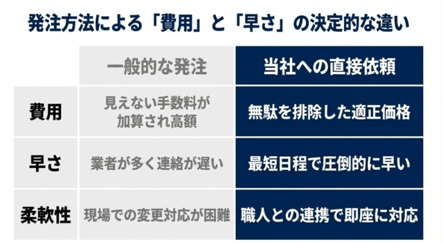 • 自社一貫対応:中間業者を挟まないため、余分なマージンを完全カット